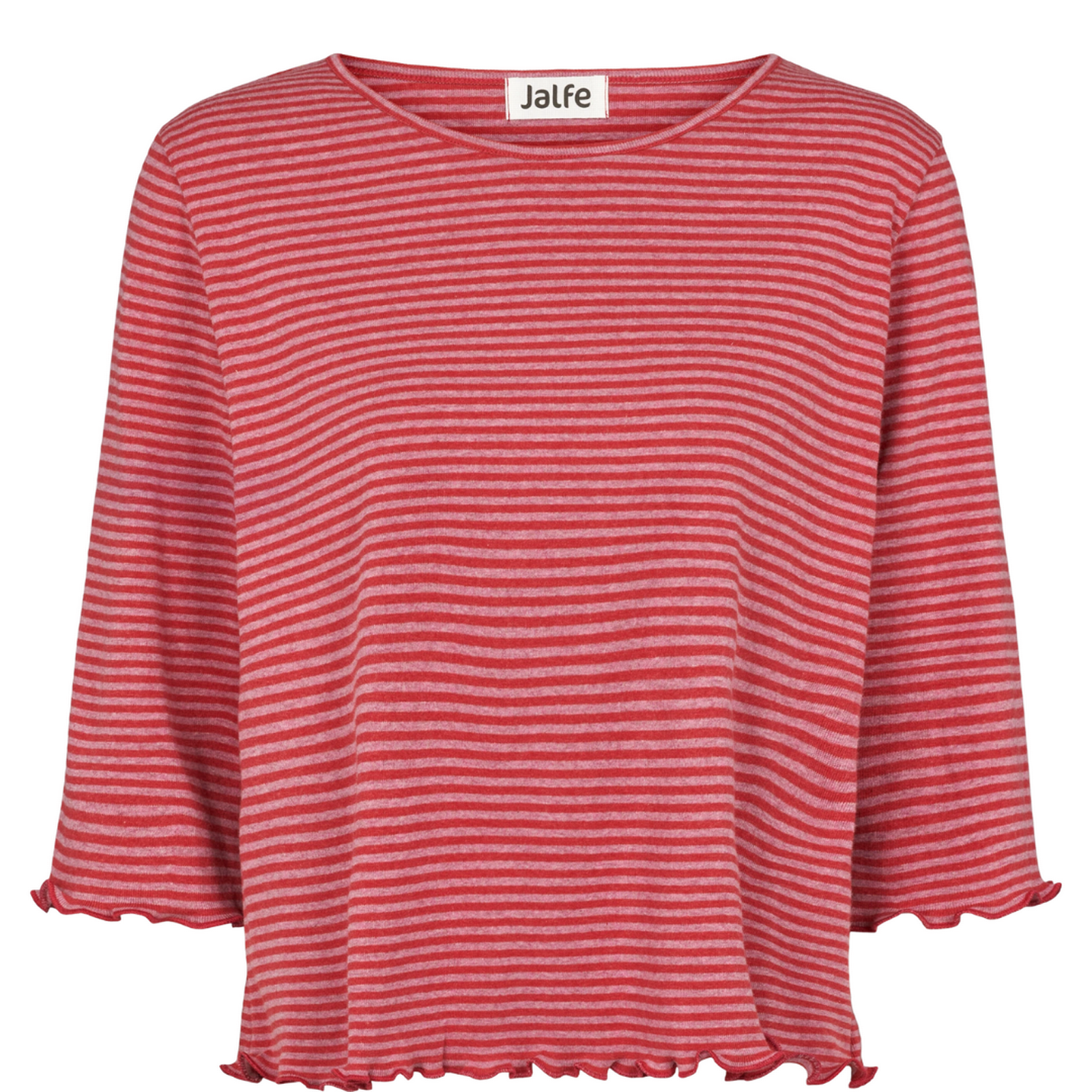 Neu im Programm von Jalfe sind diese kastigen Shirts mit 3/4 Arm und einem schönen Wellenrand. Sie sind kürzer als die Langarmshirts und wesentlich weiter geschnitten. Ideal also für alle Frauen, die es noch lässiger oder kaschierender mögen.Im Zweifel kann man eine Größe kleiner bestellen.