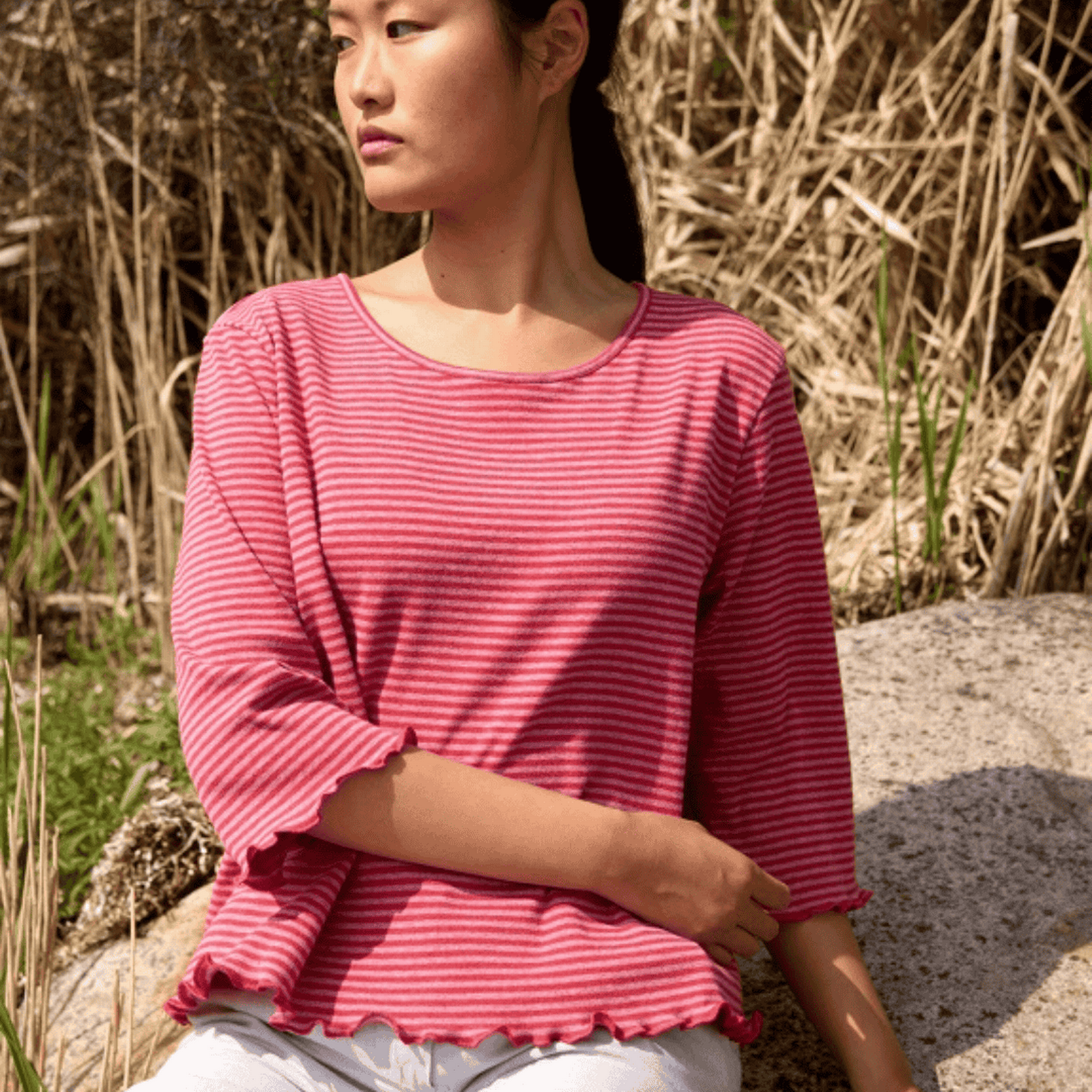 Jalfe Bio-Baumwollstreifenshirt, kastig, Coral-Oldrose, (464s)